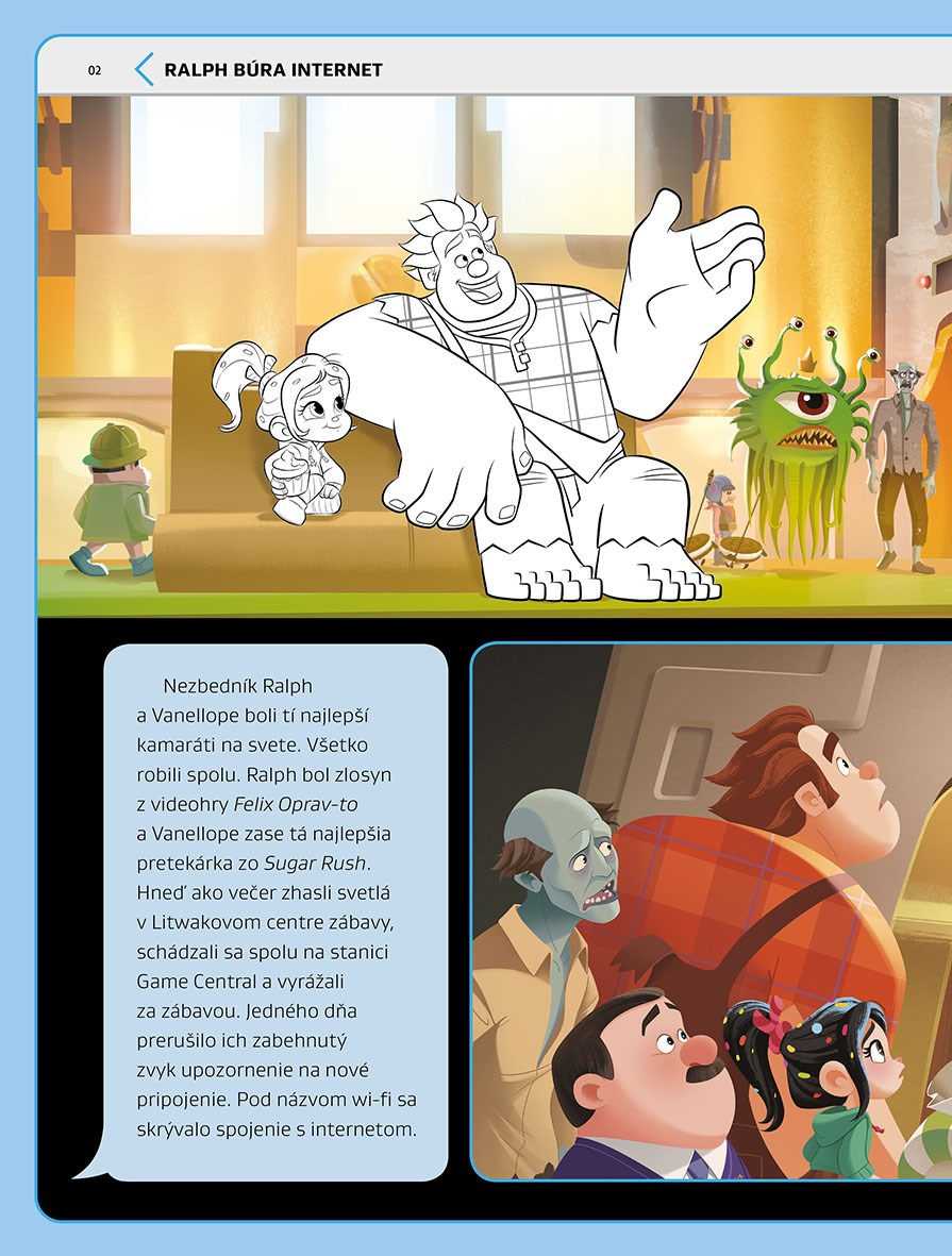 Prečítaj si o neuveriteľných dobrodružstvách Ralpha a Vanellope. Tentoraz sa nerozlučná dvojica hrdinov vydá do nepreniknuteľných hlbín internetu! Vyfarbi svojich obľúbených hrdinov a dodaj príbehu farby, alebo nájdi samolepku a nalep ju na správne miesto. Potrebuješ iba trocha fantázie a túto knižku. Veselú zábavu!