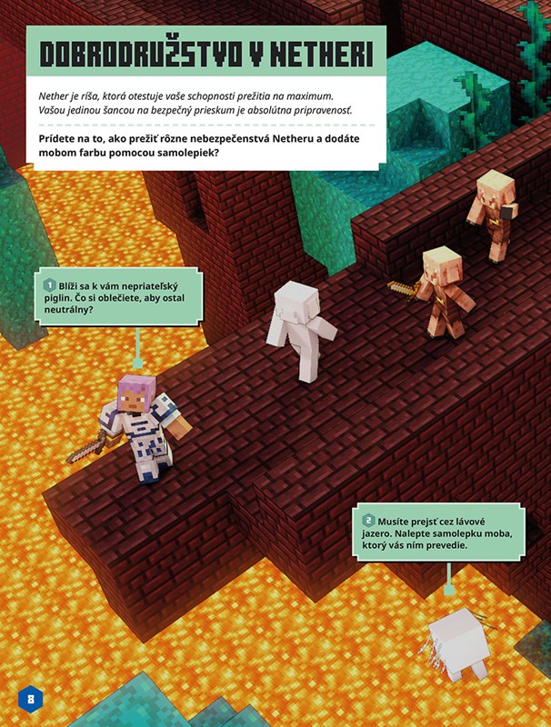 Zvolávame všetkých hráčov! Nastal čas vyraziť na ďalšie dobrodružstvo v Minecrafte. S viac ako 250 samolepkami sa naučíte vyzbrojiť postavy, vyrobiť si predmety, prežiť stretnutia s mobmi a preskúmať niektoré z najúžasnejších biómov v Minecrafte. V tejto knižke na vás čaká svet plný zábavy!
