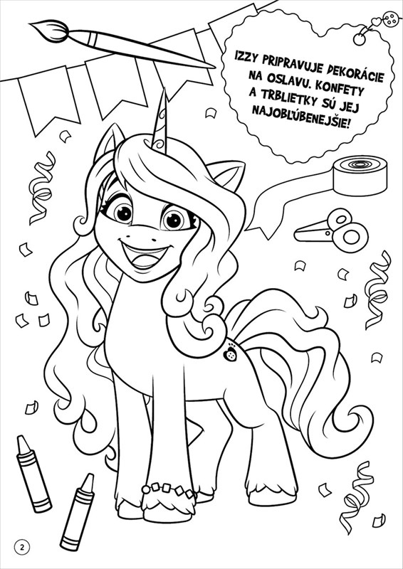 Poníky organizujú epickú párty a ty si srdečne zvaná! Zober pastelky a rozsvieť párty tými najžiarivejšími farbami! Hotové obrázky ozdôb samolepkami!