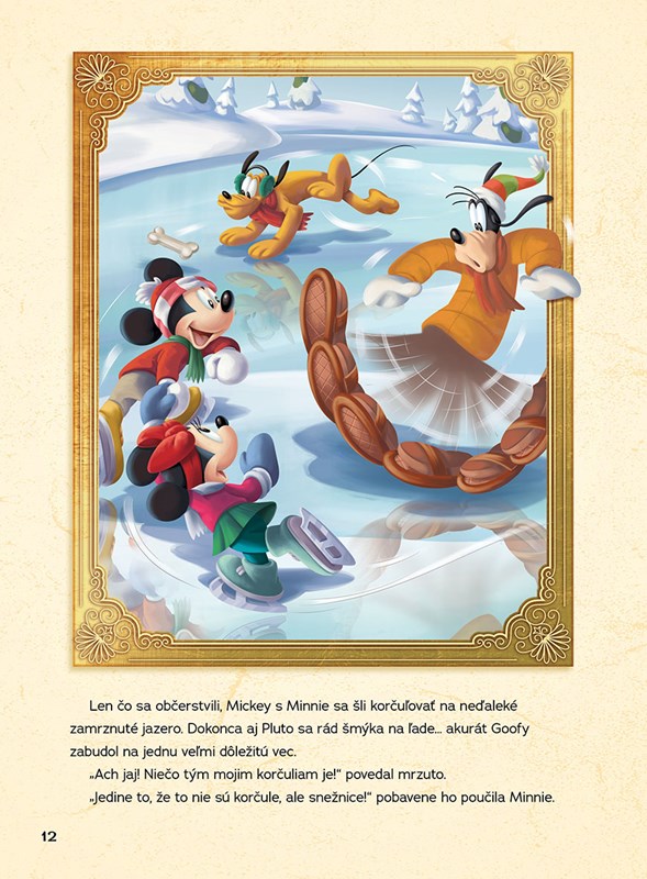 Vydajte sa s Mickeym a jeho kamarátmi na báječné zimné prázdniny do hôr a pomôžte im pri napínavom pátraní po stratenom šteniatku menom Vločka. V ďalšom príbehu si prečítate, ako sa Mickey s Minnie vybrali na nákupy vianočných darčekov a na návštevu predstavenia Luskáčik. S knižkou krásne ilustrovaných rozprávok o nezabudnuteľných dobrodružstvách Disneyho postavičiek prídu Vianoce raz-dva!