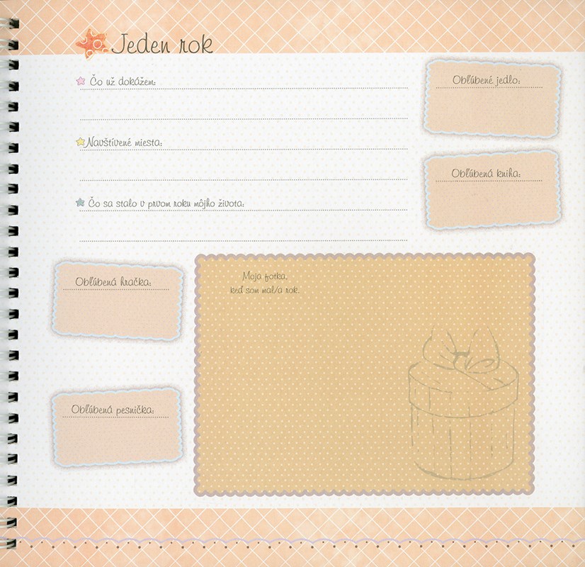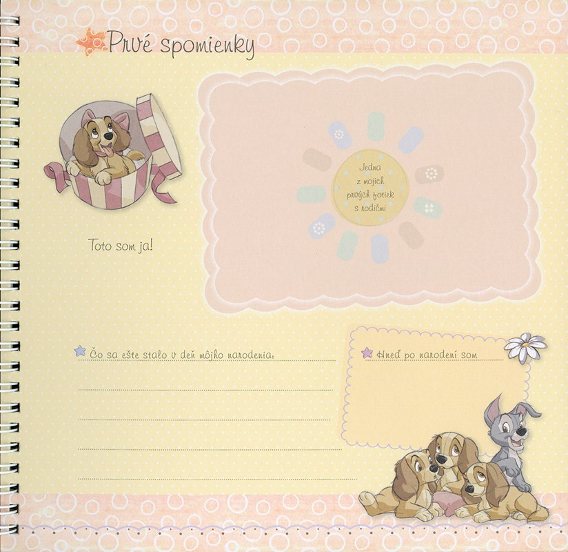 V tejto nádhernej knihe si môžete uchovať všetky spomienky, dôležité okamihy, fotografie a krásne zážitky spojené s prvými rokmi života vášho dieťaťka. Knihu dopĺńajú roztomilé obrázky obľúbených postavičiek z filmov Walta Disneyho.