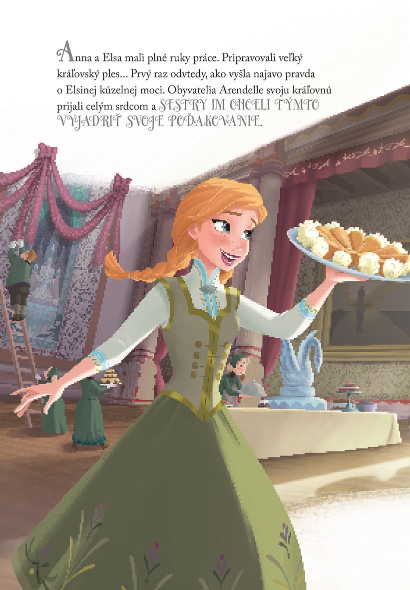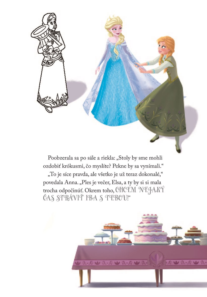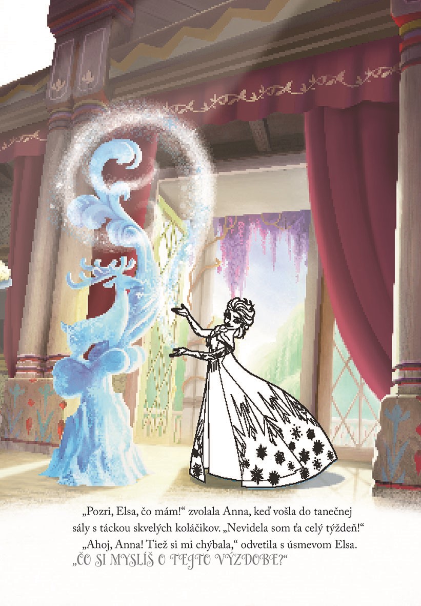 Prečítaj si veselý príbeh, ako Anna s Elsou pripravovali prvý kráľovský ples. Potom si svoje hrdinky vyfarbi alebo nájdi samolepku a najlep ju na správne miesto.