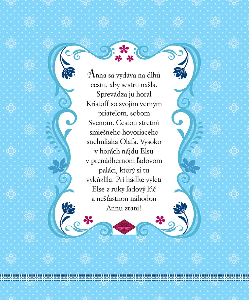 Na každej strane ťa čaká krátky text z obľúbeného príbehu Ľadové kráľovstvo a úžasný obrázok zložený z 50 dielikov puzzle.