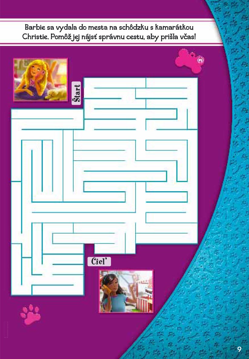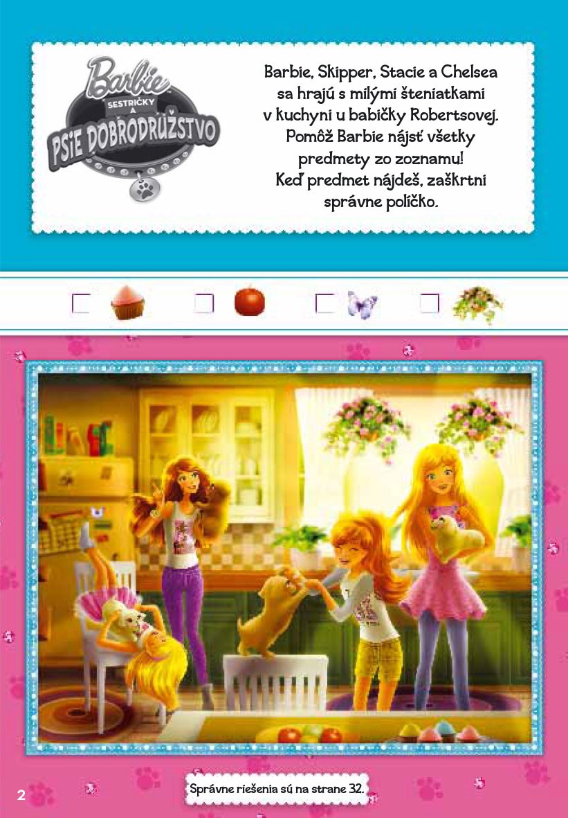 Zábavný zošit plný hádaniek, doplňovačiek, hier, maľovaniek a samolepiek. Barbie, jej sestričky a štyri šteniatka sa vydajú hľadať dávny poklad, ktorý má zachrániť mestečko, kde žije ich stará mama.