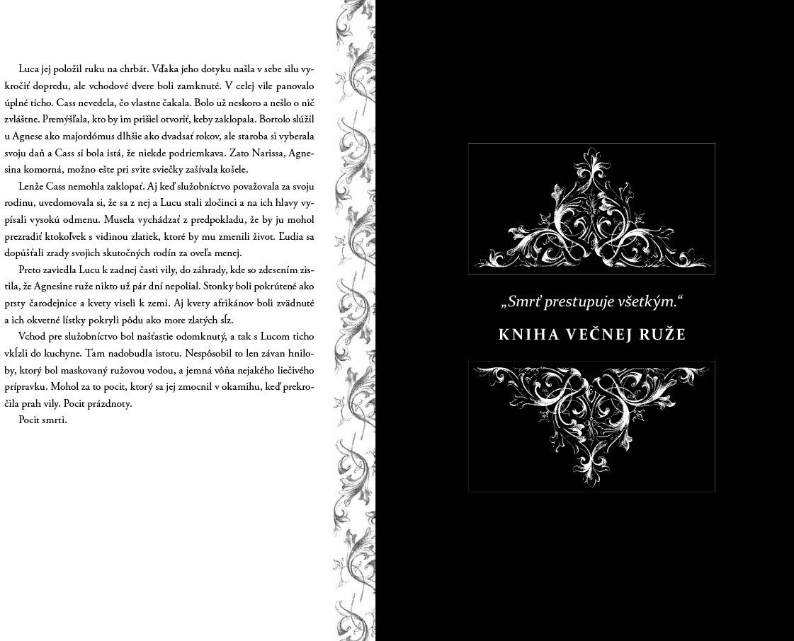 Nič nie je nebezpečnejšie, ako veľké tajomstvo. Cass a Luca sú na úteku pred zákonom a Rádom večnej ruže. Keď sa rozdelia, aby získali jediný dôkaz, ktorý ich môže zachrániť, sú ich životy a láska rozorvané na kusy priateľmi, ktorí ich nenávidia, a nepriateľmi, ktorí ich chcú zabiť. Keď sa Cass ocitne v osídlach zvrhlého rádu, znova prichádza Falco ako jediná nádej na slobodu. Ukáže sa však, že Luca má svoj vlastný šokujúci plán. V napínavom závere trilógie Temné vody sa Cass musí postaviť rádu a raz navždy rozhodnúť o svojom osude. Kto poletí vedľa nej, až konečne nájde krídla?