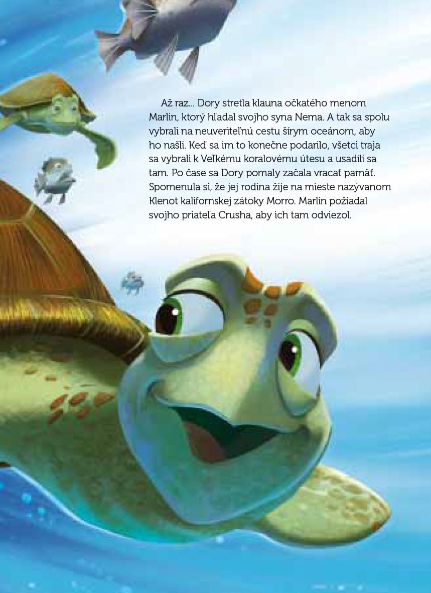 Snívali ste niekedy o úžasnom dobrodružstve v hlbinách oceána? Vezmite si farbičky a ponorte sa do azúrových vôd spolu s Nemom, Marlinom a Dory! Prečítajte si dojímavý príbeh o priateľstve, rodine a o malej modrej rybke s krátkou pamäťou, ale zato s veľkým srdcom! Táto kniha zachytáva dobrodružstvo plné maľovaniek a samolepiek podľa známeho filmového príbehu. Na nič nečakajte, zaberte plutvami a vrhnite sa do vĺn!
