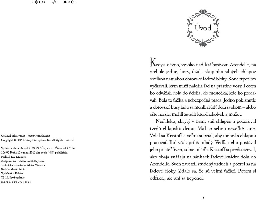 Priprav sa na mrazivý závan ľadového vetra z hlbokých severských fjordov, zasnežených hôr a nekonečného mora. Celé kráľovstvo v Arendelle je zakliate mocným ľadovým kúzlom kráľovnej Elsy. Pri kráľovskej bráne ťa čaká princezná Anna. Vydaj sa spolu s ňou, so statočným mládencom Kristoffom, sobom Svenom a snehuliakom Olafom na nebezpečnú cestu, ktorá ukáže, či skutočná láska prekoná krutú zimu.