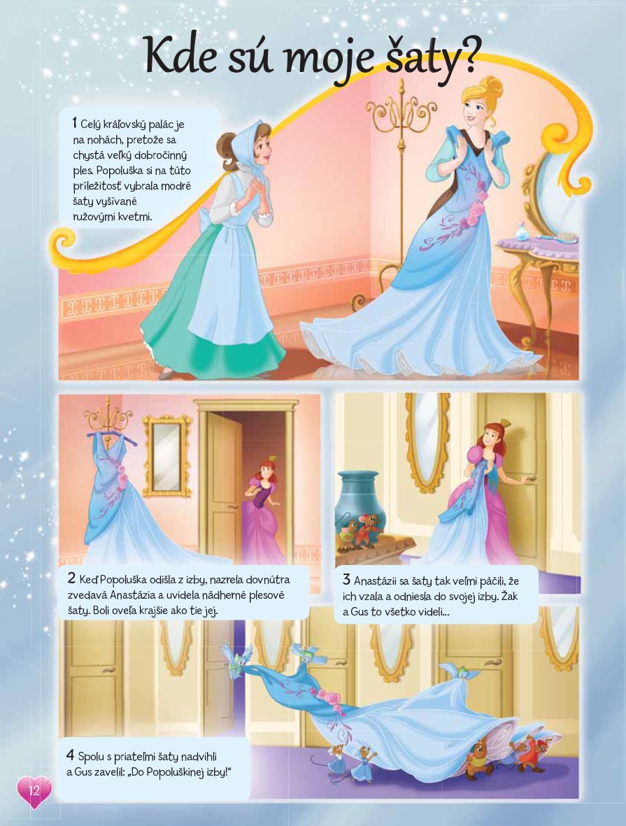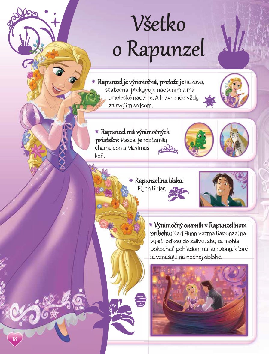 V tejto bohato ilustrovanej knižke čakajú na malé čitateľky ich obľúbené princezné – Ariel, Popoluška, Rapunzel, Snehulienka, Šípková Ruženka a Tiana. Môžu si spolu s nimi prečítať zaujímavé príbehy, vylúštiť hádanky, doplňovačky a vyfarbiť maľovanky.