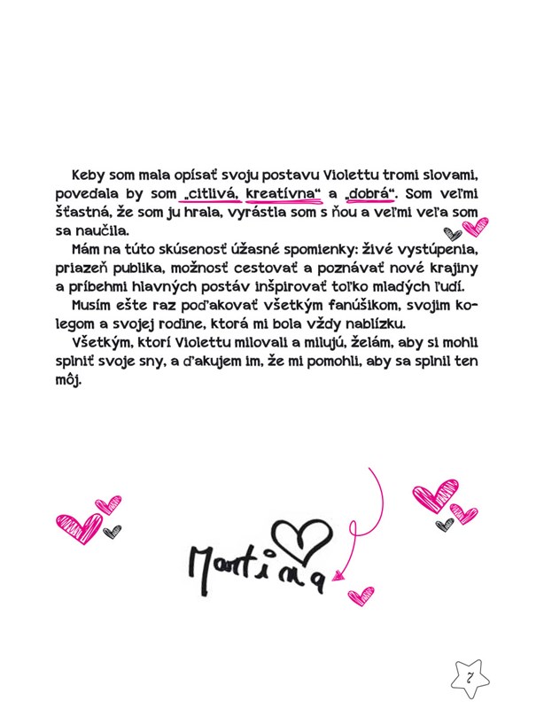 Nová kniha Violetta: Môj denník – Tri roky spolu je inšpirovaná treťou sériou televízneho seriálu a venuje sa vzťahom a témam, o ktorých sa ešte nehovorilo. Zábavný sled nedorozumení, spomienok, úsmevov a sem-tam nejakých sĺz. Pretože taký je život, a Violetta to dobre vie. Predslov napísala Martina Stoesselová a ostatní herci pridali venovanie.