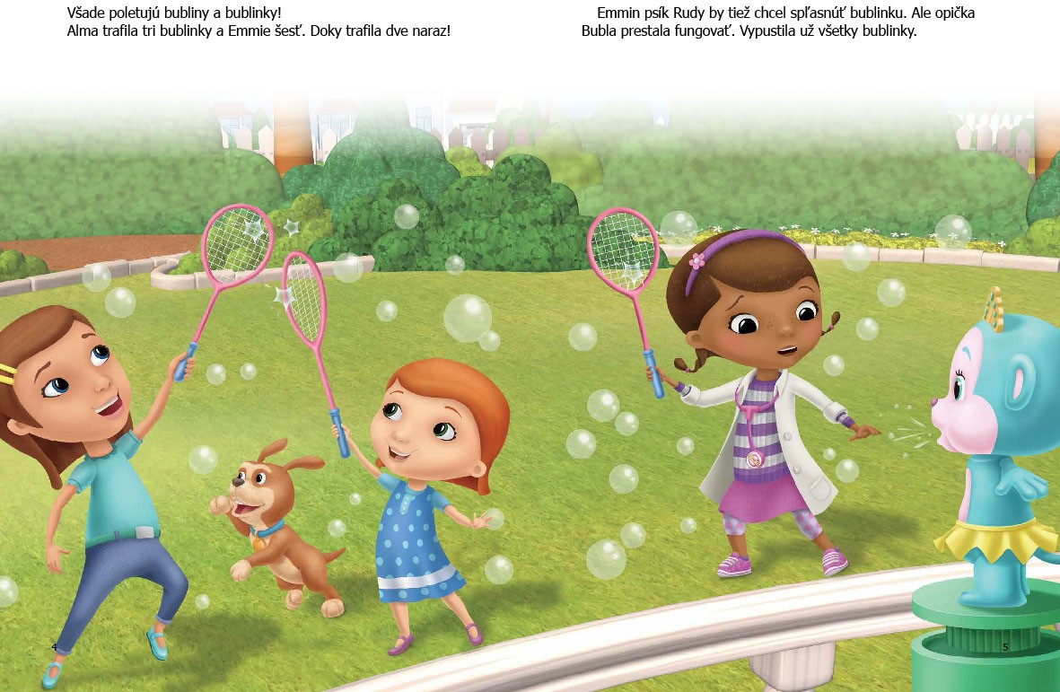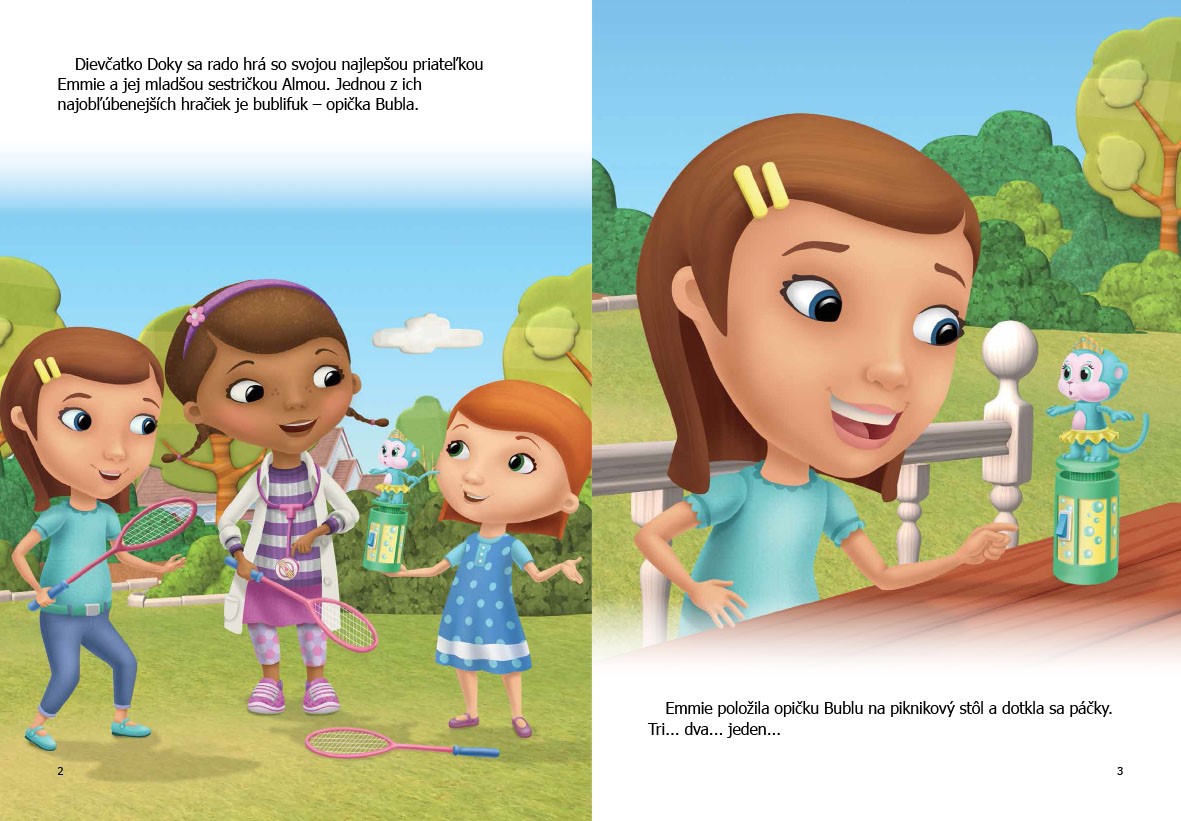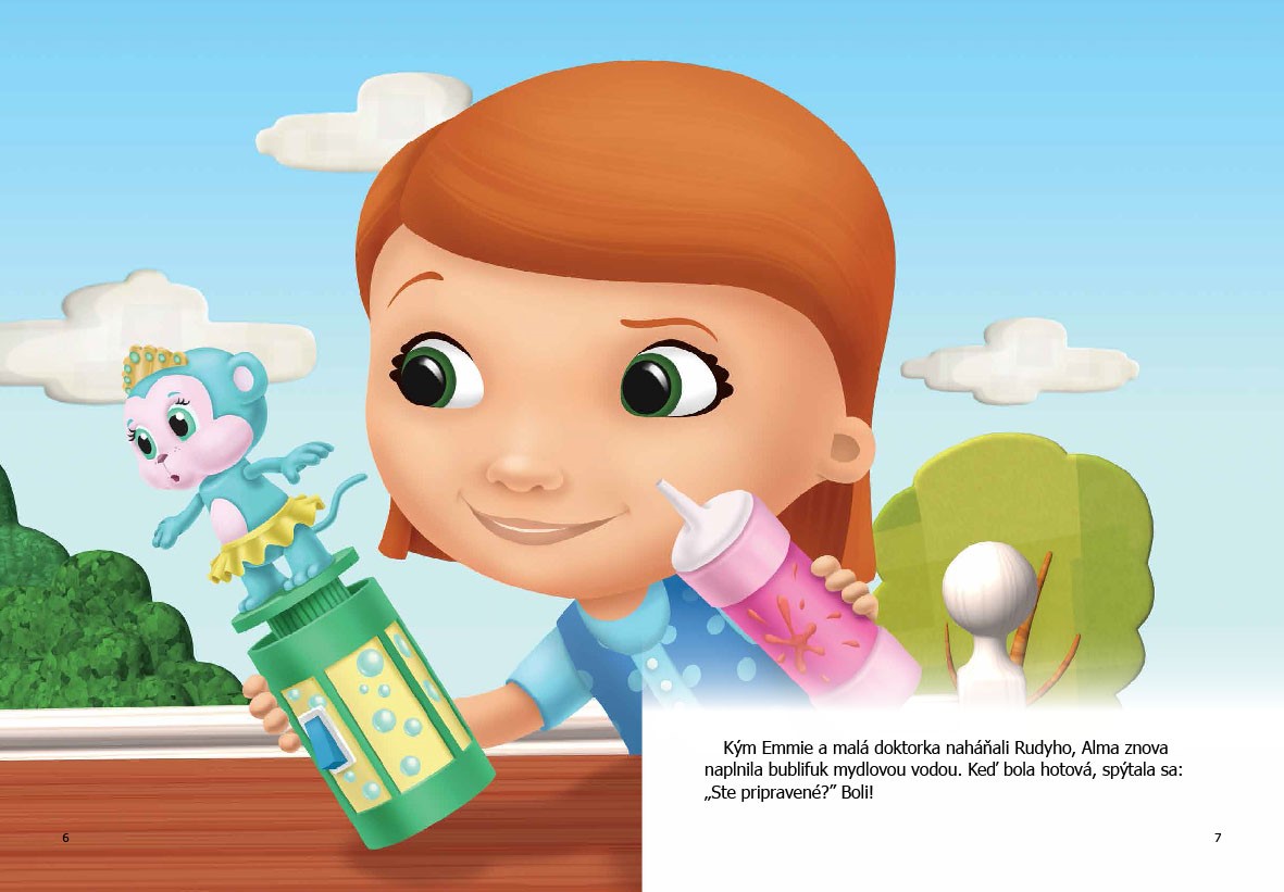 Doky s priateľkami Emmie a Almou sa rady hrajú s bublinkami. Ale keď sa Bublinkovej opičke minie mydlová voda, nemajú sa bublinky z čoho tvoriť. Alma naplní nádobku znova, ale zdá sa, že niečo nie je v poriadku. Opička stále nemôže robiť bublinky. Najvyšší čas, aby ju doktorka dôkladne vyšetrila!