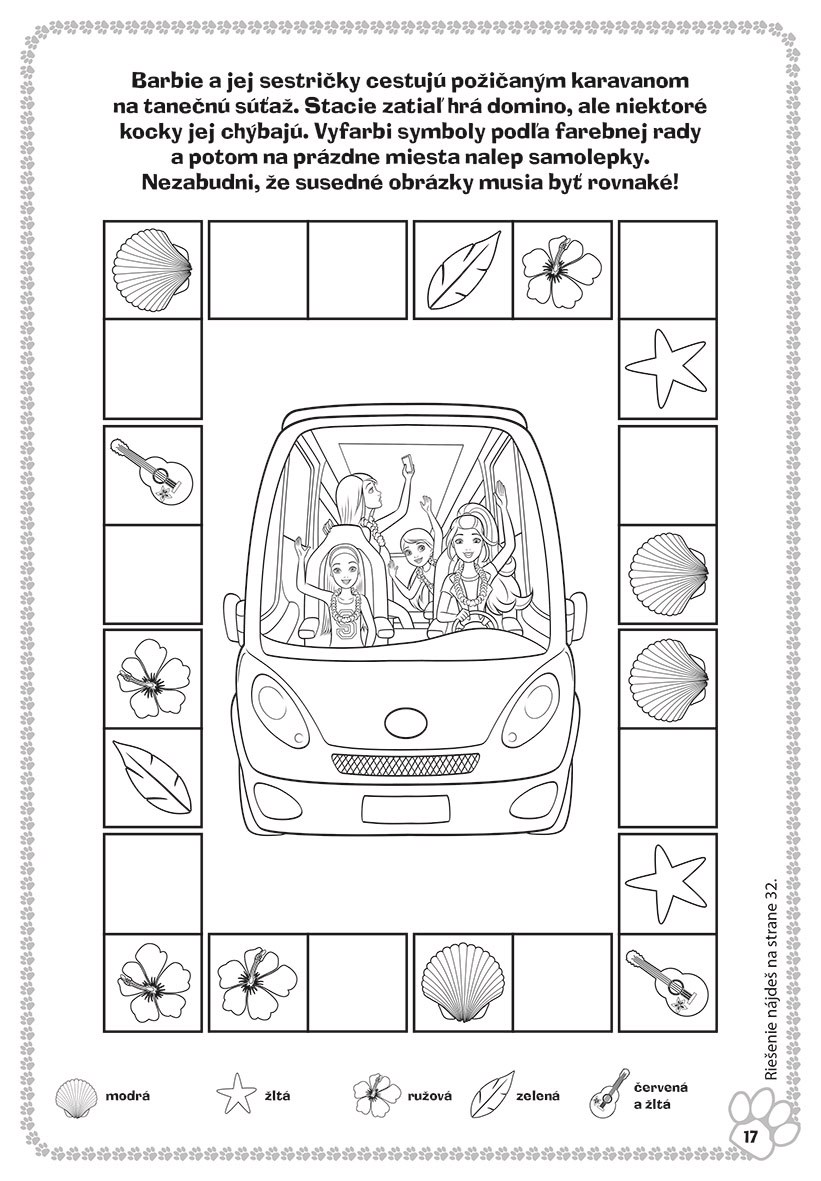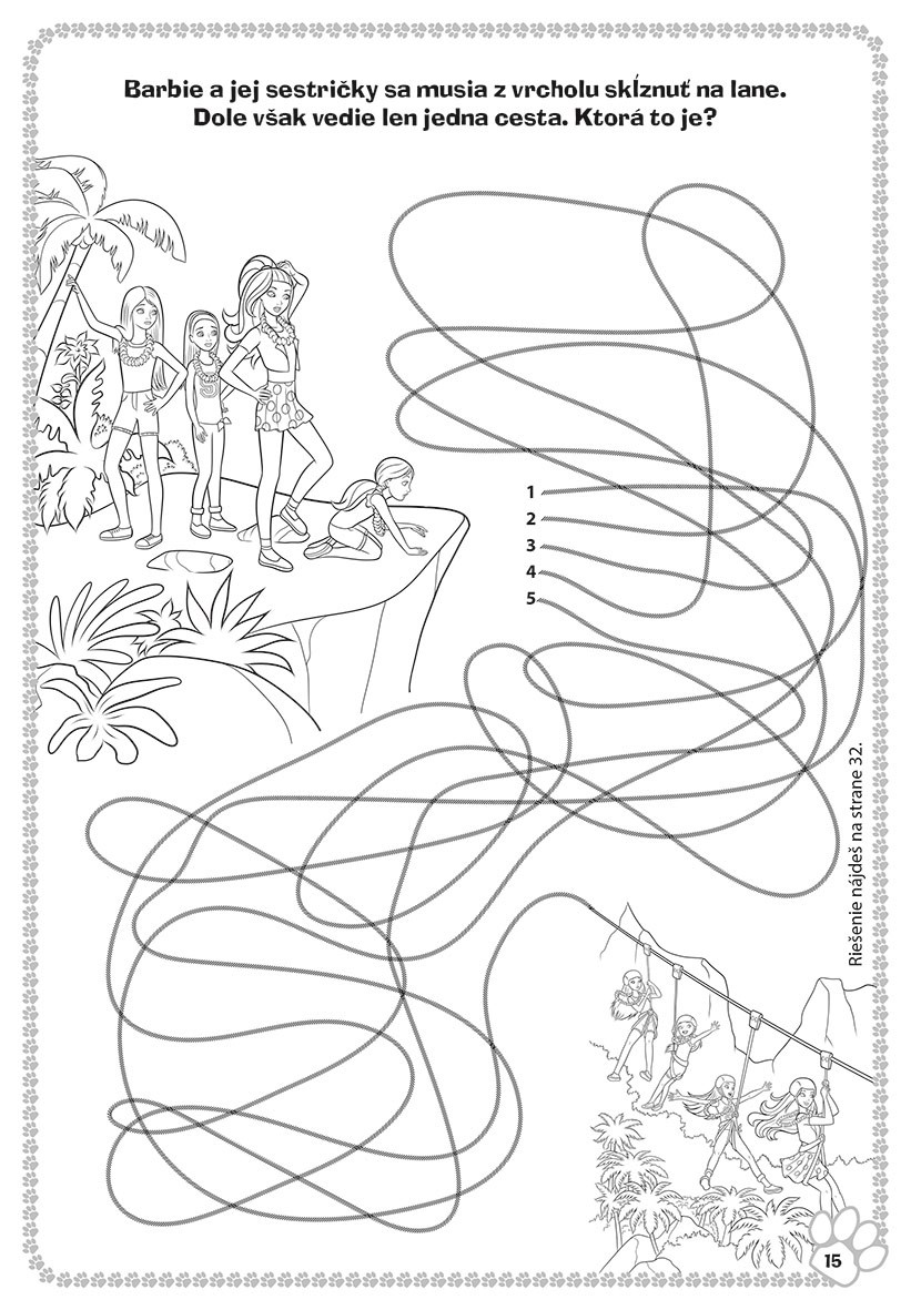 Roztopašné šteniatka, dokonalé prázdniny a… nečakané starosti! Vstúp s Barbie a jej sestričkami do sveta veľkého dobrodružstva a uži si kopec zábavy pri riešení úloh a hádaniek, vyfarbovaní krásnych obrázkov a mnohých ďalších veselých aktivitách!