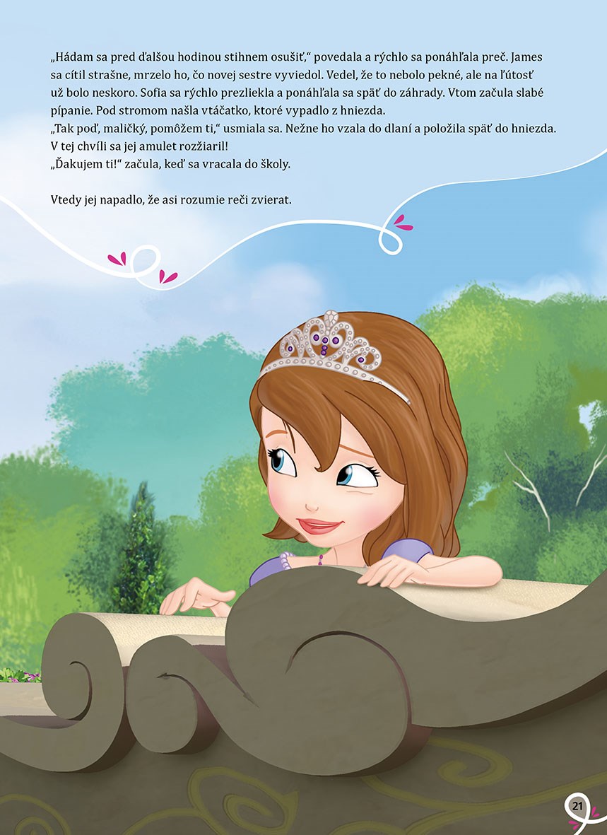 Snívali ste niekedy o tom, aké je to byť princeznou? Vezmite si farbičky a spolu so Sofiou urobte prvé kroky na kráľovskom dvore! Prečítajte si príbeh o obyčajnom dievčatku, ktoré sa zo dňa na deň stalo princeznou. V tejto knihe nájdete okrem krásneho príbehu veľa maľovaniek a samolepiek. Na nič nečakajte a nasadnite do kráľovského koča, ktorý vás odvezie do kúzelného Čarokrásna!