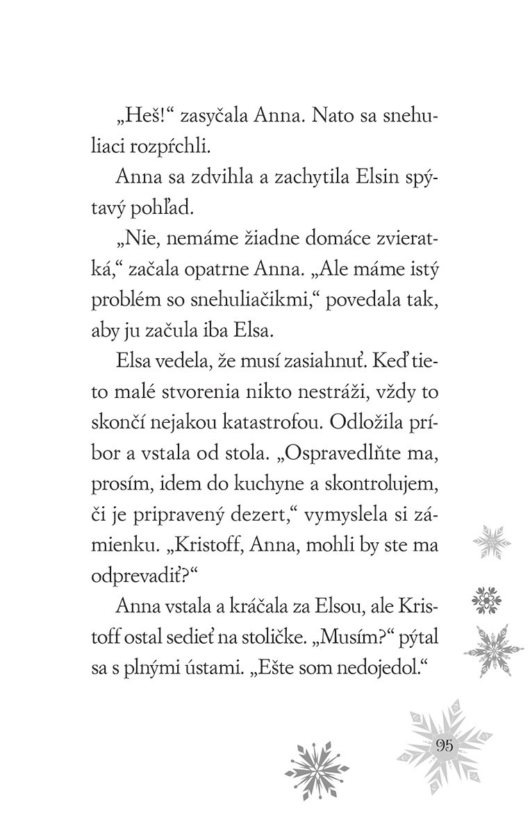 Kráľovské sestry očakávajú vzácnu návštevu a rozhodnú sa, že ju privítajú v Elsinom ľadovom paláci vysoko v horách, najkrajšej stavbe v Arendelle. Hostí však čaká nemilé prekvapenie: na zámku totiž bývajú malí snehuliaci, ktorým slová etiketa a slušné správanie nič nehovoria. Anna s Elsou majú pred sebou neľahkú úlohu. Podarí sa im skrotiť húf snehových nezbedníkov?