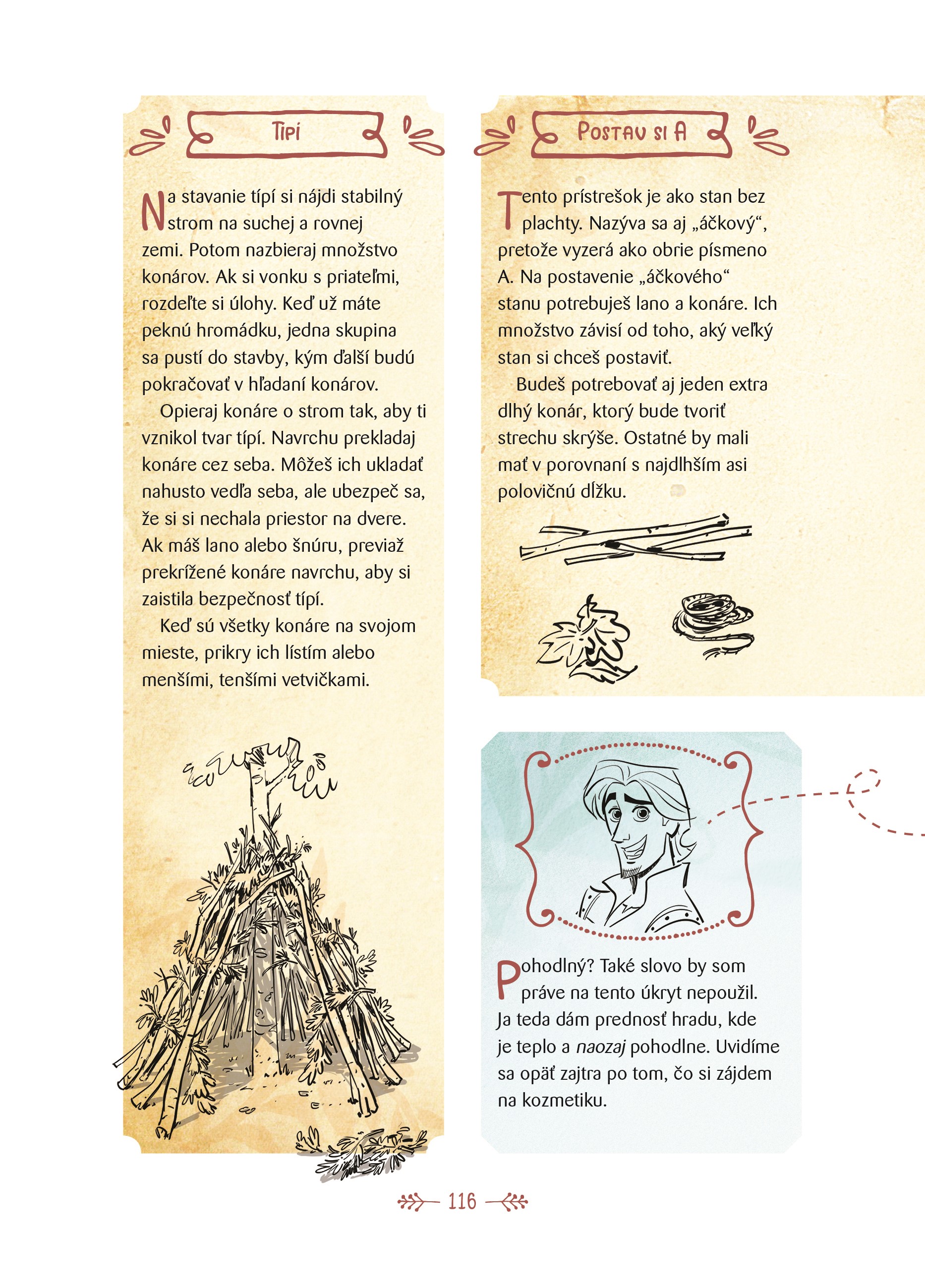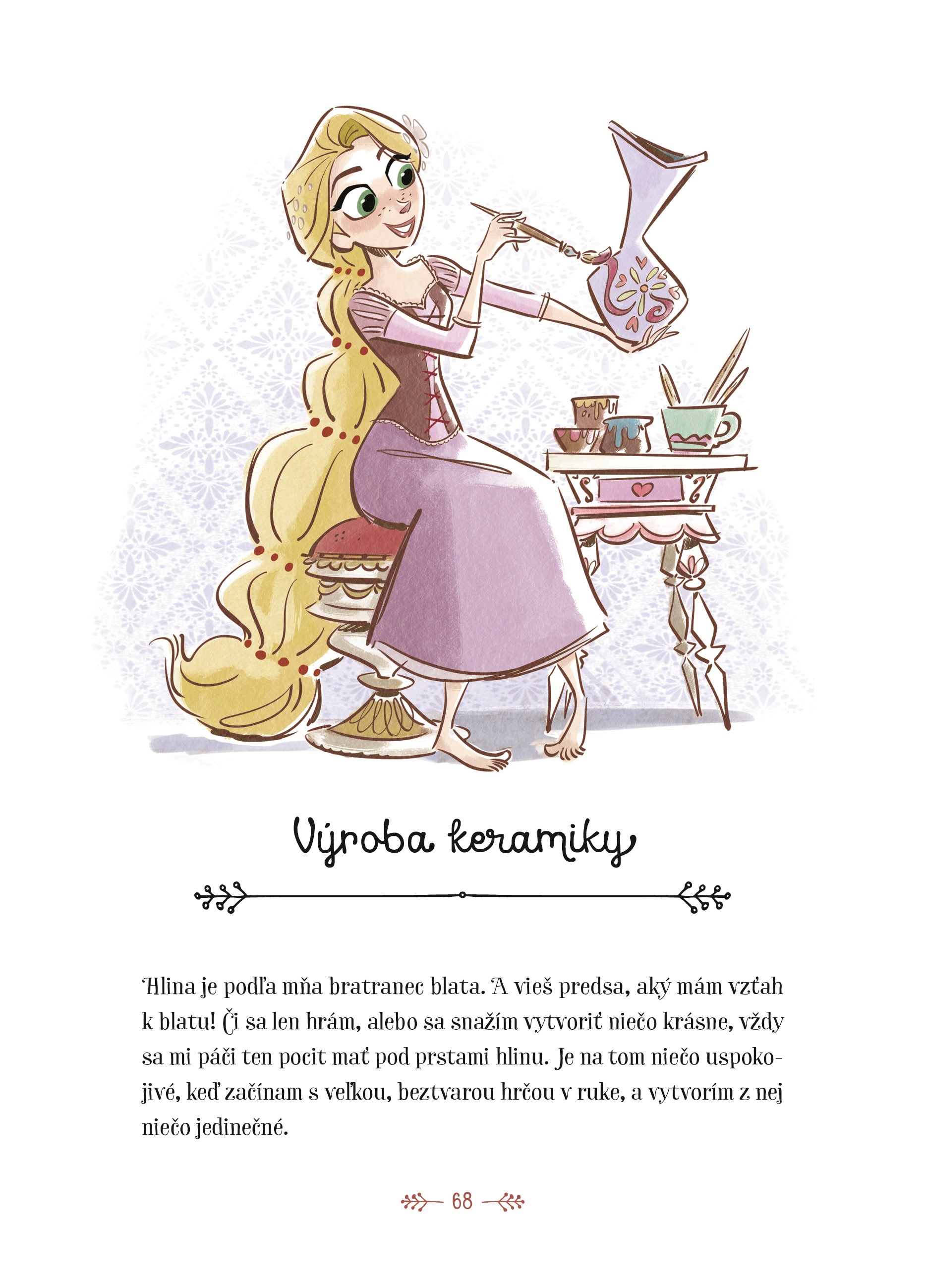 Jej Sprievodca je plný nádherných farebných ilustrácií a podrobných návodov. Do detailov opisuje všetky tvorivé a zábavné veci, ktoré odvážna a zbožňovaná Rapunzel miluje úplne najviac!
