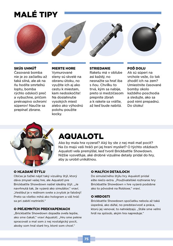 Roblox je plný vzrušujúcich hier, v ktorých súťažíte s ostatnými protihráčmi. Ak sa chystáte do boja, mali by ste byť pripravení. Či už pretekáte na obrovských prekážkových dráhach, bojujete proti futuristickej vojenskej armáde, či sa vyhýbate podlým loptám, v príručke Najlepších bojových hier nájdete cestu k úspechu. Je plná užitočných informácií a rozhovorov s tvorcami hier, a preto je nevyhnutnou knihou každého Robloxiana.