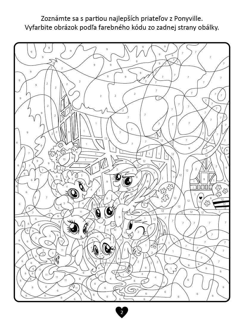 Pripravte si obľúbené pastelky, ceruzky a fixky, otvorte tieto veselé maľovanky plné poníkov, a zábava sa môže začať! S výberom správnych farieb vám pomôže číselný kód. Vyfarbujte a získajte prekrásne farebné obrázky svojich obľúbených hrdinov z MY LITTLE PONY!