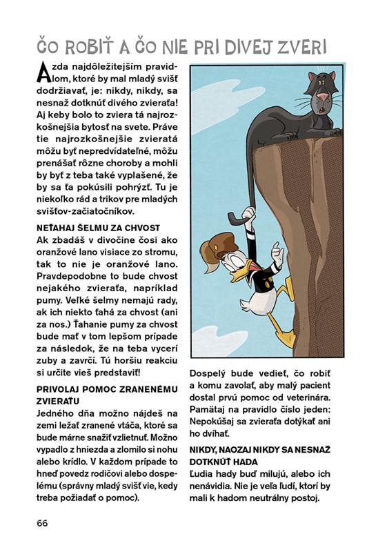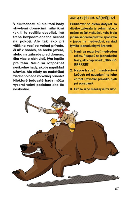 Hui, Dui a Lui, synovci strýka Držgroša a hrdinovia známeho televízneho seriálu pre vás pripravili túto skvelú príručku, ktorá vám pomôže v bežnom živote, ale aj pri riešení tých najneuveriteľnejších záhad. Naučí vás, ako sa orientovať bez kompasu, zbaviť sa otravného hmyzu či vyrobiť si skvelú masku. Nechýba ani pár dobrých rád, ako slušne stolovať, a hodiť sa môže i správna finta, ako plávať v mori... peňazí! A to nie je všetko. Knižka je plná ďalších zaujímavých informácií, tipov a návodov podaných svižne a s humorom.