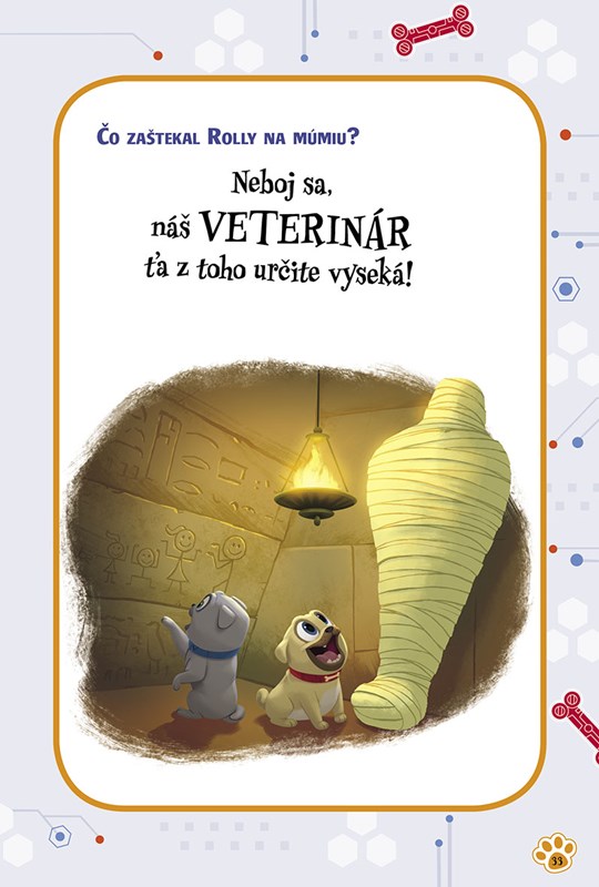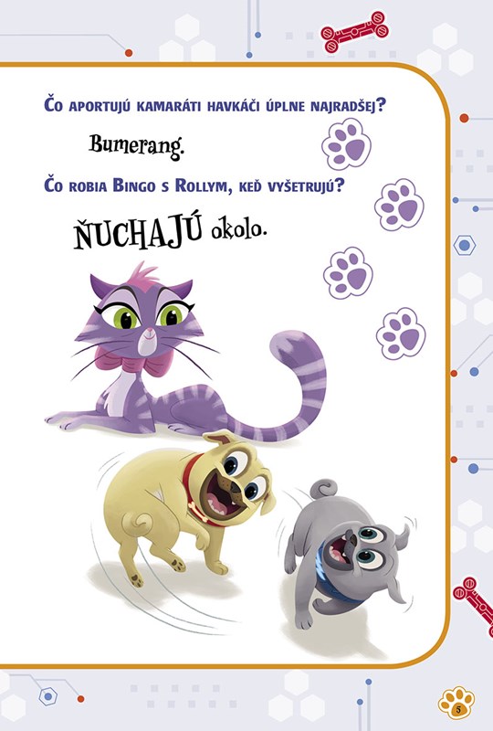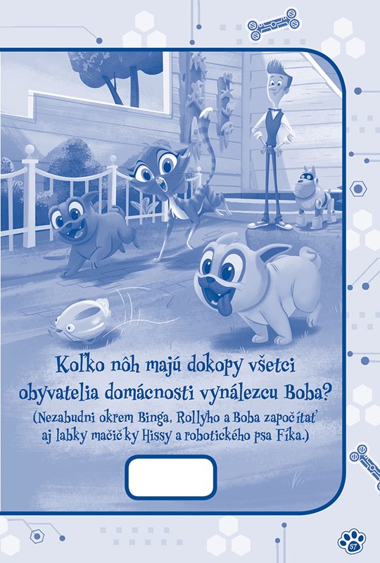 Vydajte sa s kamarátmi havkáčmi za senzačným dobrodružstvom a užite si veľa zábavy s knižkou plnou parádnych šteňacích vtipov a úloh. Vyzbrojte sa ostražitosťou a dôvtipom a spolu s Bingom a Rollym sa pustite do riešenia skvelých hádaniek. Dozviete sa, či majú psíky odtlačky, a odhalíte, aké zručnosti sú nevyhnutné na úspešné vyšetrovanie alebo čím nakŕmiť robotického psa!