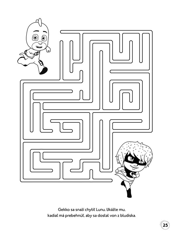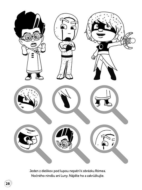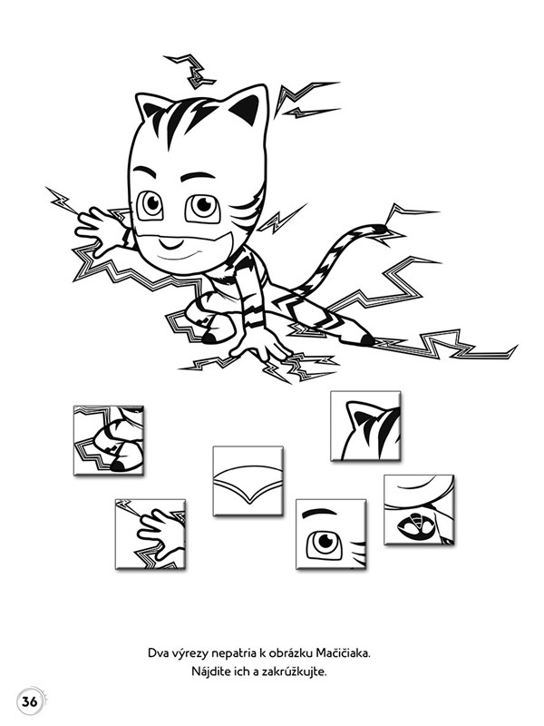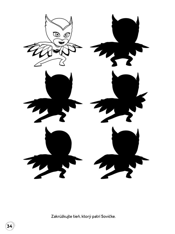 Vyzbrojte sa pastelkami a spolu s Mačičiakom, Sovičkou a Gekkom sa vydajte do úžasného sveta nebojácnych Pyžamasiek, kde nie je núdza o dobrodružstvo.Ukážte Mačičiakovi, ako prejsť bludiskom, aby sa dostal k svojej mačičkáre, alebo nájdite tieň, ktorý patrí ľstivému vedátorovi Rómeovi.