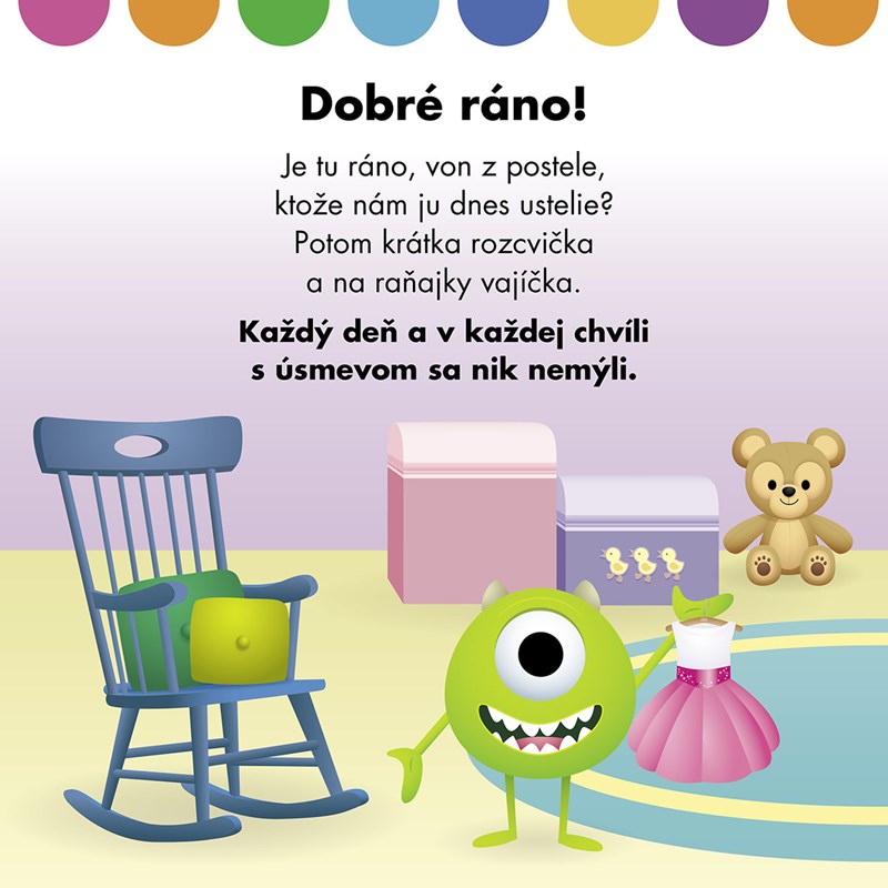 Veselé básničky a roztomilé ilustrácie prevedú deti známymi každodennými činnosťami - urobia si rozcvičku, zájdu do parku a stanú sa malými umelcami... Špeciálne tvrdý papier znesie i menej šetrné zaobchádzanie a postará sa, aby knižka slúžila dlhý čas.
