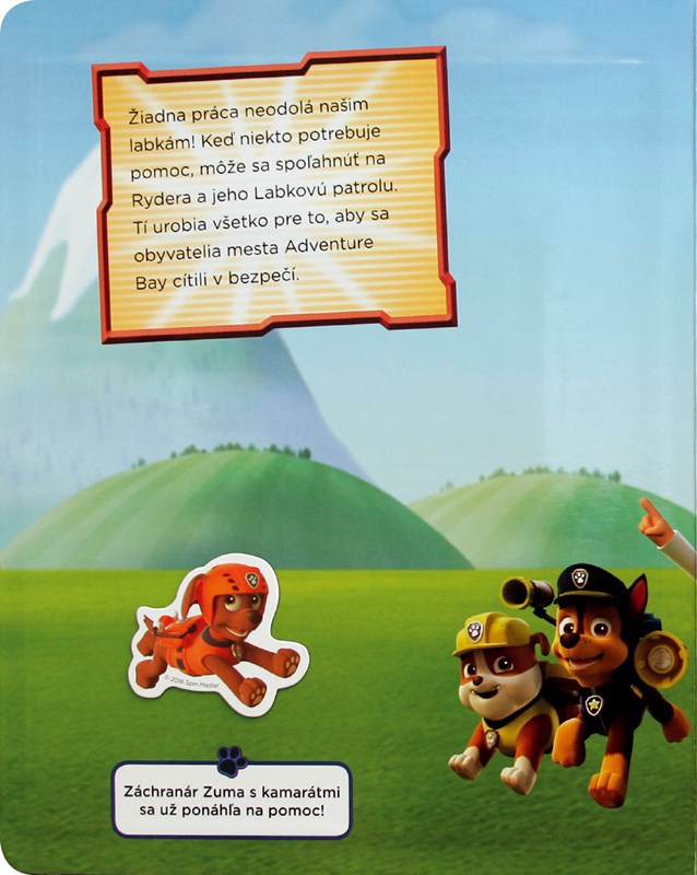 Žiadna práca neodolá našej labke! Keď je niekto v núdzi, Labková patrola mu ihneď pribehne na pomoc. Kto sa chce pridať ku psíkom z Labkovej patroly a ich kamarátovi Ryderovi a prežiť s nimi rôzne dobrodružstvá? Kniha je určená pre deti od 3 rokov a pomáha rozvíjať tvorivosť, jemnú motoriku a podporuje sústredenie. Kratšie texty a úlohy v obrázkoch hravou formou navedú deti, kam magnetky správne umiestniť.