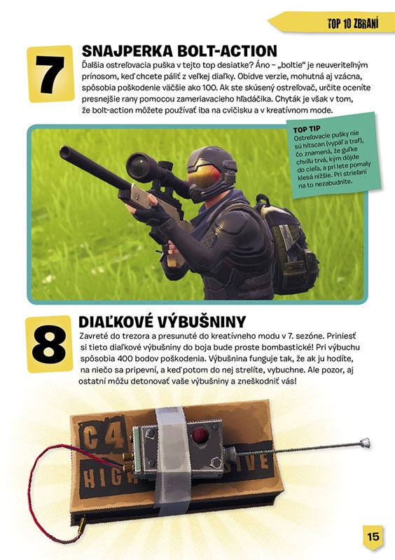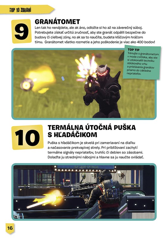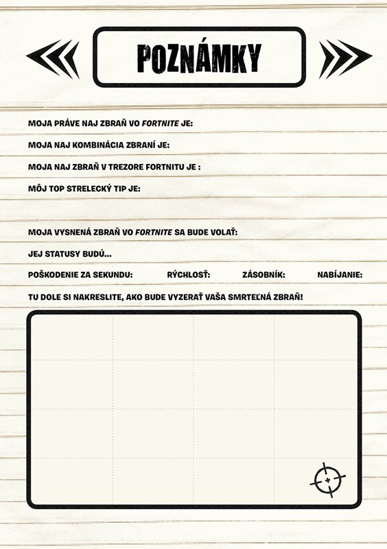 Inventár tejto knihy je plný úžasných zbraní, šialených outfitov, hrozivých výbušnín a rôznych časovo limitovaných modov. Spoznáte tajomné miesta na mape, skvelé vozidlá, herné frázy či pozoruhodné stavby... V knihe dokonca nájdete aj priestor, kde si môžete zapísať svoje najobľúbenejšie vychytávky, vyznamenania a fantastické veci vo Fortnite. Tak na čo čakáte? Je čas spojiť sa s vaším tímom a vyšplhať sa na Battle Bus – hodiny tikajú a vaše radikálne fortnitové odpočítavanie sa začína!