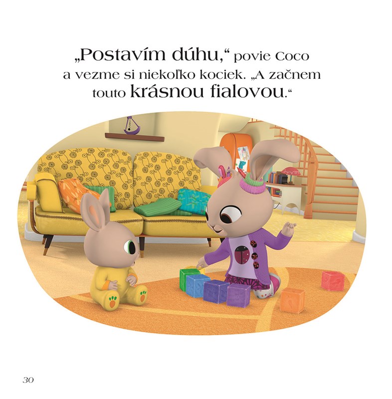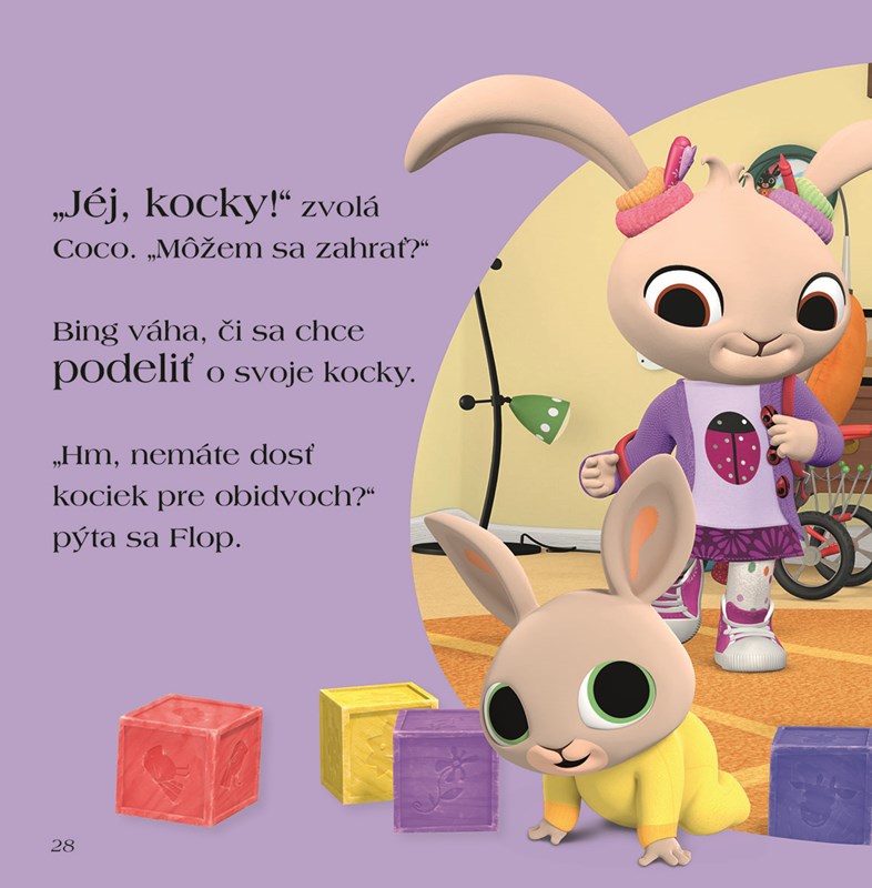 Bing a jeho kamaráti sú tu! V nových príbehoch si prečítate, čo sa stalo s tortou, keď pripravovali oslavu, ako si rozdelili kocky pri spoločnej hre, kto ich naučil vyfukovať bublinky a tiež, ako pomocou autíčok zasadili strom. Po náročnom dni nastal čas ísť do postieľok. Tak dobrú noc!