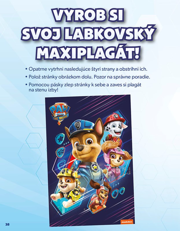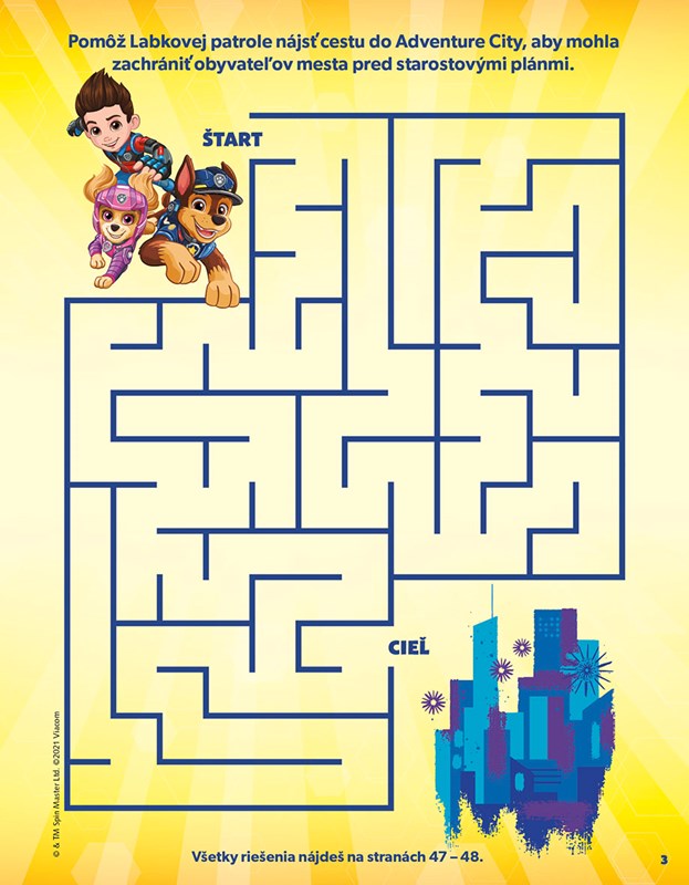 Pomôžte statočným šteniatkam ochrániť Adventure City a užite si veľa zábavy s úlohami na motívy filmového dobrodružstva Labkovej patroly. Môžete lúštiť, vyfarbovať a vystrihovať alebo si vyrobiť skvelý plagát s obľúbenými hrdinami. Odvážne labky už sa ženú, aby zachránili každú situáciu!