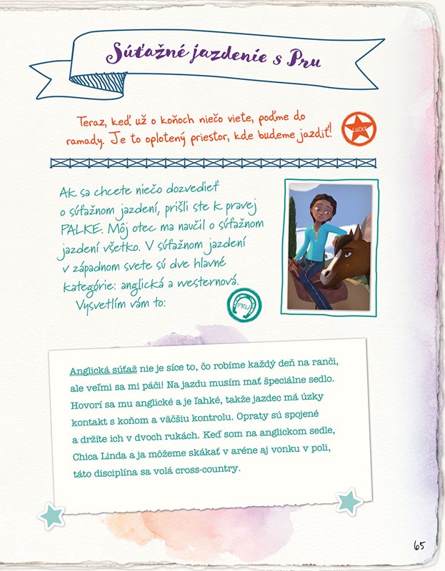 Zoznámte sa s Lucky Prescottovou, ktorá vám porozpráva o všetkom, čo má najradšej. Predstaví vám mestečko Miradero, v ktorom žije, zoznámi vás so svojimi kamarátkami Pru a Abigail, ale najmä so Spiritom, najlepšom koňovi, akého pozná. S pomocou svojich kamarátok a ďalších ľudí z mestečka pripravila pre vás knihu plnú zaujímavostí o koňoch, v ktorej nebudú chýbať ani zábavné kvízy, chutné recepty a super hry!