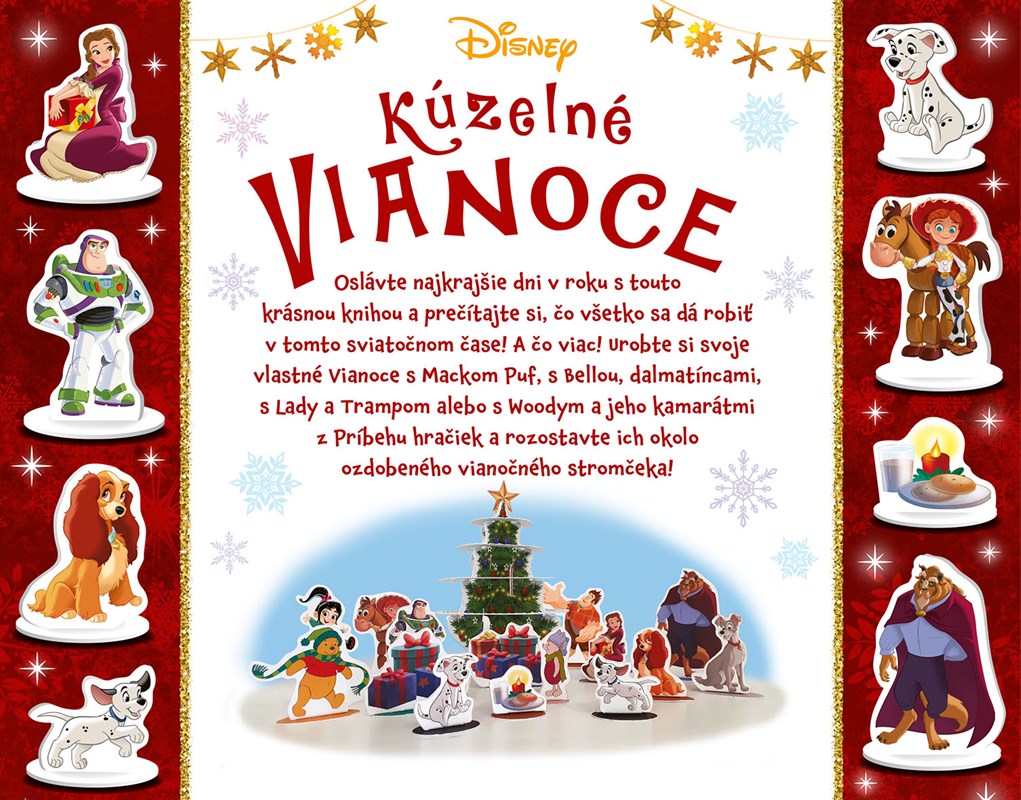 Oslávte najkrajšie dni v roku s touto krásnou knihou a prečítajte si, čo všetko sa dá robiť v tomto sviatočnom čase! A čo viac! Urobte si svoje vlastné Vianoce s Mackom Puf, s Bellou, dalmatíncami, s Lady a Trampom alebo s Woodym a jeho kamarátmi z Príbehu hračiek a rozostavte ich okolo ozdobeného vianočného stromčeka!