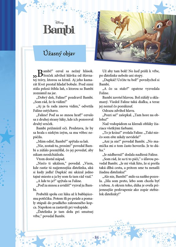 Vstúpte do čarovného sveta Walta Disneyho a zažite nové dobrodružstvá s obľúbenými hrdinami. Pomôžte Mauglímu uniknúť pred pomstychtivým tigrom Šér Chánom, s morskou vílou Ariel preskúmajte tajomstvo na dne oceána a so srnčekom Bambim zasa hlboký les. Zistite, ako si našiel Simba nových kamarátov, a prečítajte si, aké narodeninové prekvapenie pripravili myšky pre Popolušku. Vydajte sa na úžasnú cestu plnú fantázie a užite si spoločné chvíle pri rozprávkach, ktoré pobavia malých aj veľkých.