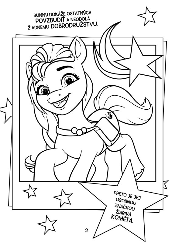 Pridajte sa k Sunny a jej kamarátom! Vezmite si obľúbené fixky a pastelky a vymaľujte poníky žiarivými farbami. So samolepkami si navyše užijete kopec zábavy!