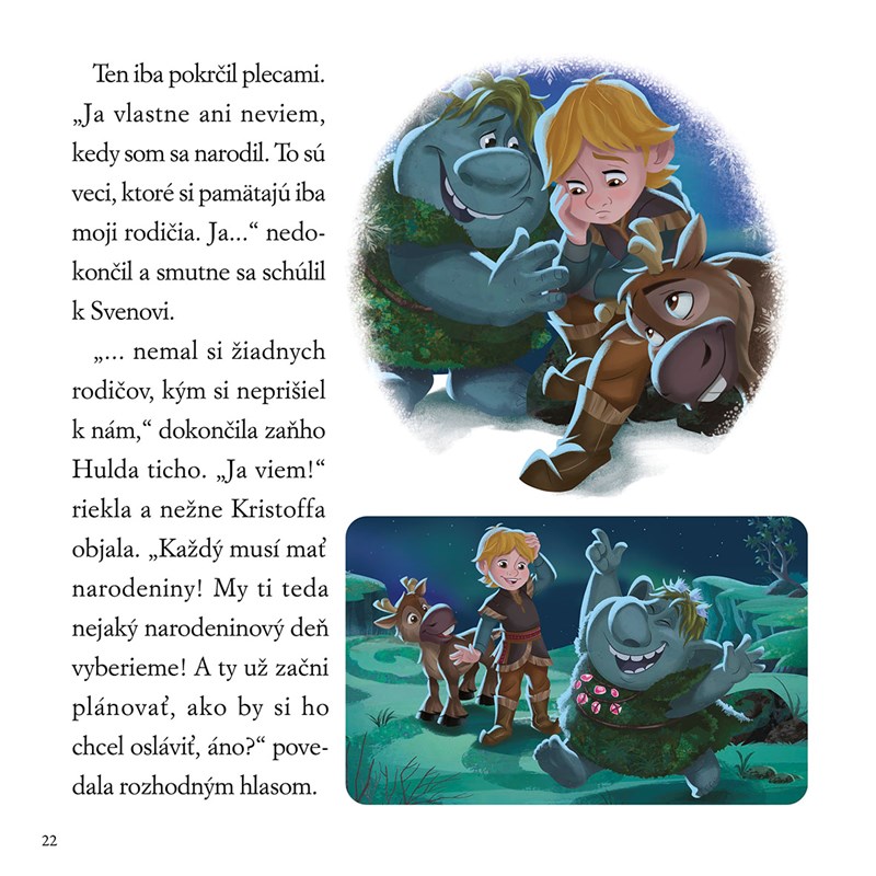 Viete, že je to už desať rokov, čo sú s nami hrdinovia z Ľadového kráľovstva – Anna, Elsa, Olaf, Kristoff a Sven? A to by sa malo pekne osláviť. Pridajte sa k narodeninovému veseliu! S princeznou Annou si užijete tie najkrajšie narodeniny, s malým Kristoffom sa zúčastníte na oslave, ktorú mu pripravila nová trollia rodina, zistíte, čo sa prihodilo na oslave narodenín kráľovnej Elsy, a dozviete sa, ako vybrať ten správny darček pre soba. Nádherne ilustrované príbehy zahrejú pri srdci všetkých malých fanúšikov Ľadového kráľovstva.