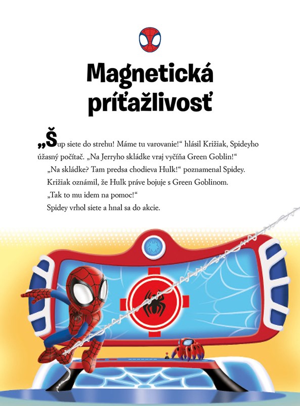 Tím Spidey vyráža do akcie! Pridajte sa k pavúčím superhrdinom s výnimočnými schopnosťami a pomôžte im pochytať všetkých zloduchov! Obľúbení hrdinovia musia ochrániť mesto pred zákerným Green Goblinom aj prefíkanou doktorkou Ock. Čaká ich pátranie po morskej príšere pod hladinou oceána, ale nájdu aj nového spojenca, ktorý im pri boji so zločinom bude kryť chrbát. Vypravte sa so Spideym za novými dobrodružstvami v dvanástich napínavých príbehoch, ktoré stihnete prečítať za päť minút.