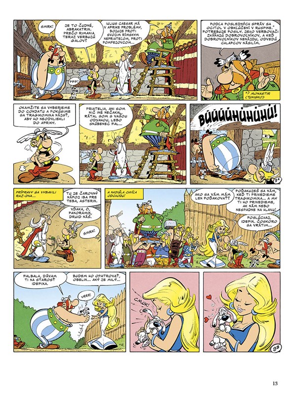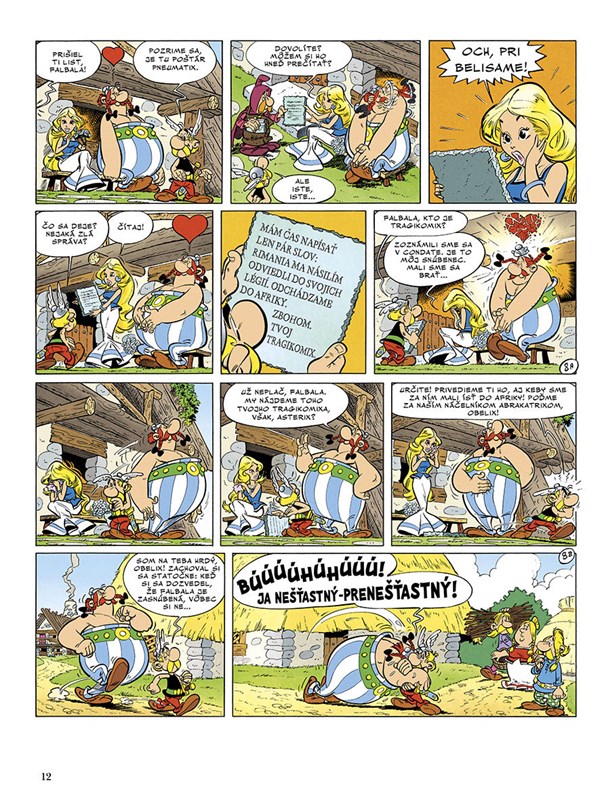 Do osady, ktorá stále odoláva rímskym legionárom, sa po dvoch rokoch vracia krásna Falbala a Obelix sa do nej zamiluje. No než sa stačí medzi nimi čokoľvek rozvinúť, všetkých prekvapí správa, že Tragikomixa, Falbulinho snúbenca, odvliekli Rimania do afrických légií. Asterix a Obelix neváhajú a ihneď vyrážajú mládencovi na pomoc.