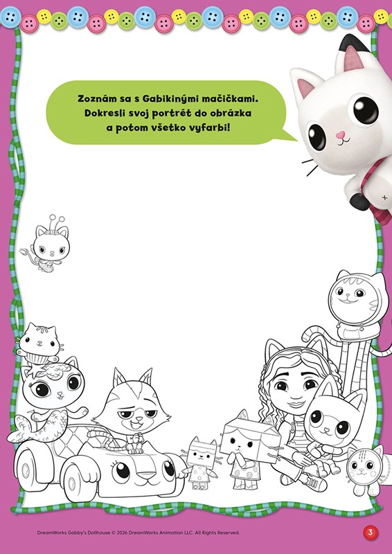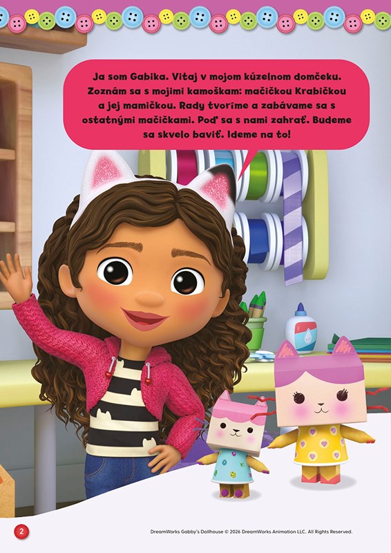 Pridaj sa ku Gabike a jej mačičkám. Rieš hádanky, kresli obrázky a vytvor si svoje vlastnú úžasné výtvory.Táto kniha obsahuje vystrihovačky s podrobnými pokynmi na výrobu dvoch skvelých výtvorov vrátane krabičky s prekvapením a tvojej vlastnej mačacej čelenky a nálepiek.