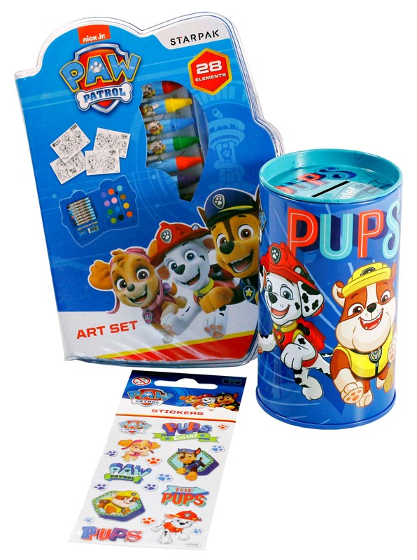 Užite si veľa zábavy so statočnými šteniatkami z Labkovej patroly a s úžasným kufríkom plným darčekov! Nájdete v ňom knihu Rozprávky pre všetky labky, výtvarnú sadu s farbičkami, štetcom a voskovkami, pestrofarebné samolepky, praktickú pokladničku a maľovanky s úlohami Hravé maľovanie s labkami. Vydajte sa po boku obľúbených hrdinov za ďalším senzačným dobrodružstvom! S kufríkom Labkovej patroly sa nebudete nudiť ani chvíľočku.
